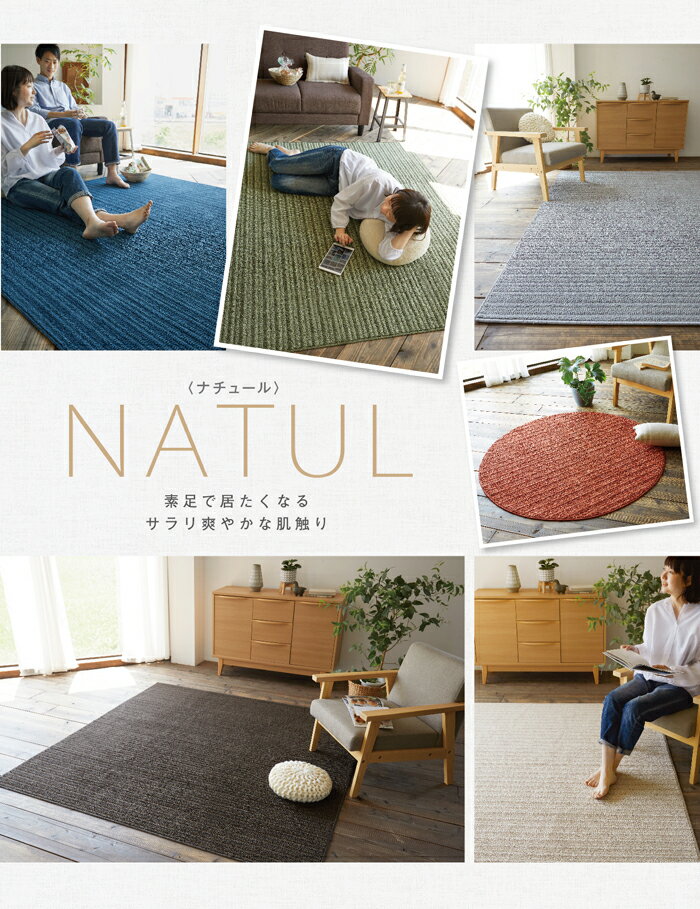 モダンでカジュアルなラグ・お手入れ簡単ループパイル日本製折り畳みラグカーペット・185cm×240cm角型・natul-l ナチュール・スミノエ遊び毛なし・防ダニ・床暖・ホットカーペット可・滑り止め付き・丸洗いOK【オールシーズン対応全6色送料無料】