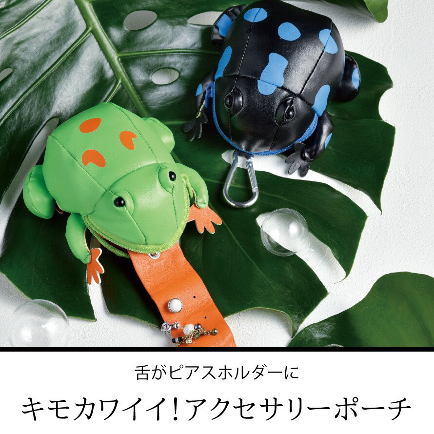 カエルの舌がピアスホルダーになったおしゃれなアクセサリーポーチです。