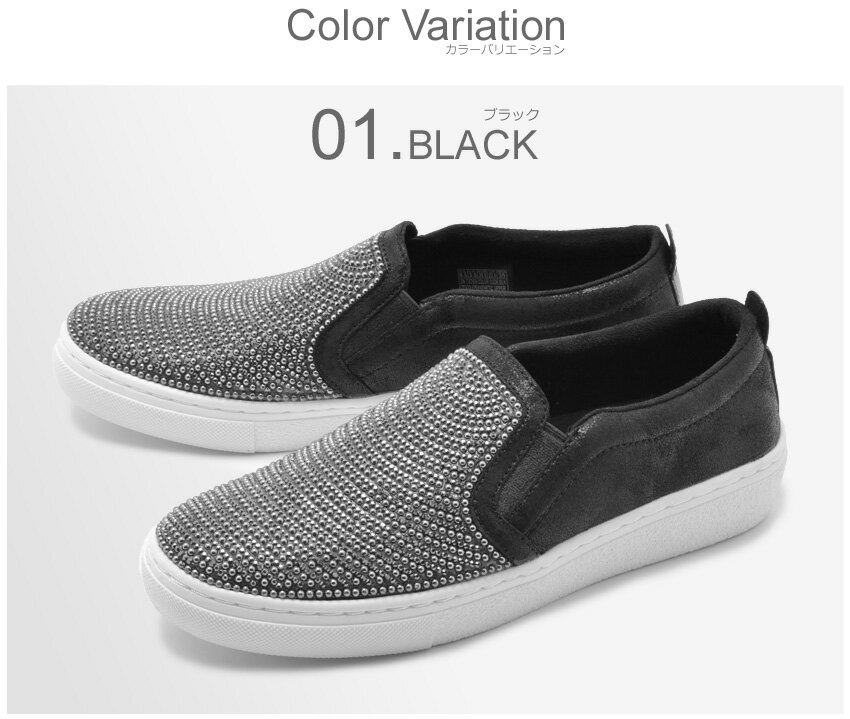 ラインストーンとパールがアッパーに散りばめられた綺麗でスタイリッシュなスリッポン。