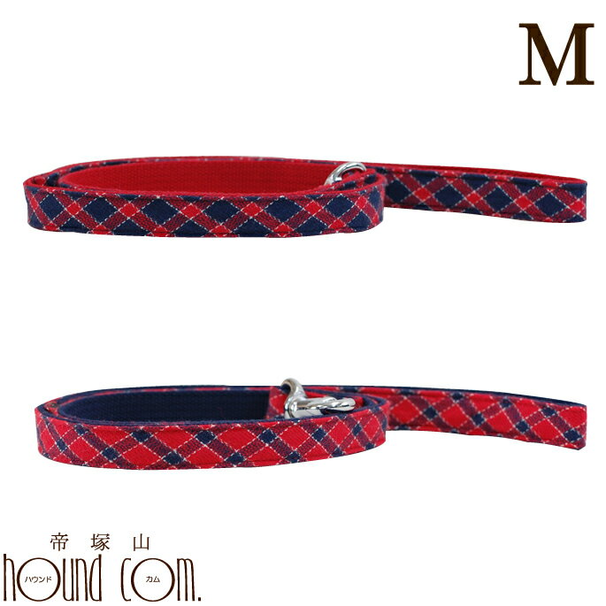 【ハーネス別売り】ASHUウェアハーネスギンガムチェック用リード Mサイズ(中型犬用) 服型 胴輪 子犬 老犬にも優しい布製ウエアハーネス