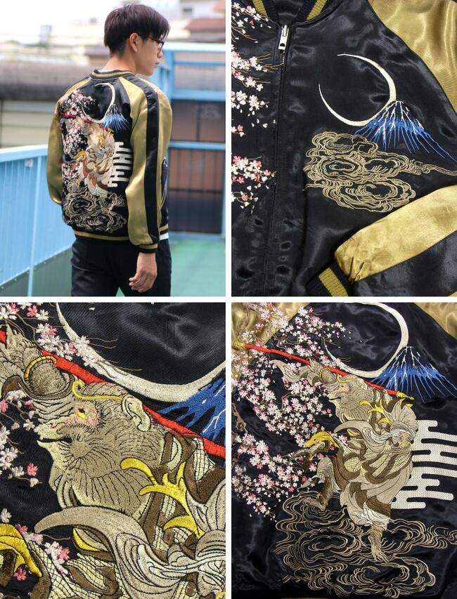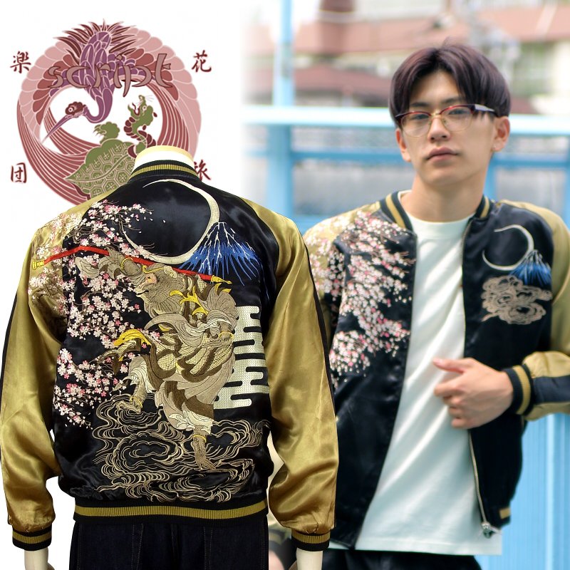 花旅楽団 はなたびがくだん桜と孫悟空スカジャン SSJ-022 和柄 和 大きいサイズXXL 3L