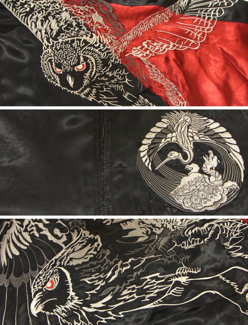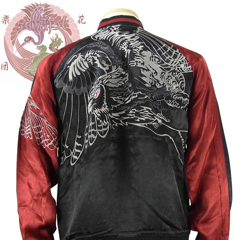 花旅楽団 SSJ-006 飛翔梟スカジャン 和柄 和 スーベニールジャケット 大きいサイズXXL 3L
