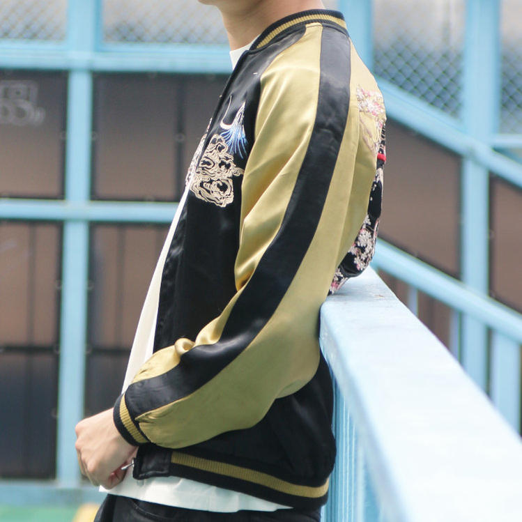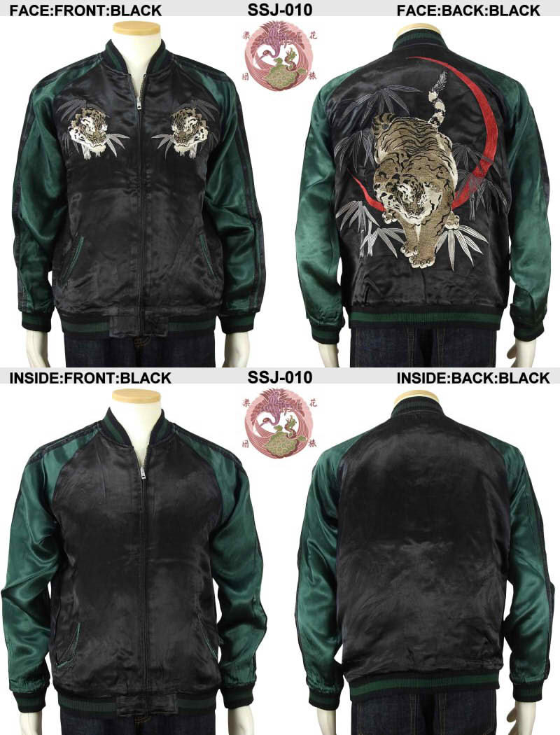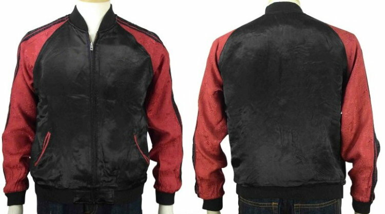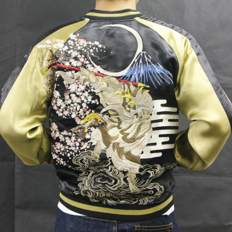 大きいサイズ スカジャン リバーシブル 地図龍X白龍 サテンX別珍 2L 日本製本格刺繍のスカジャン【コンビニ受取対応商品】