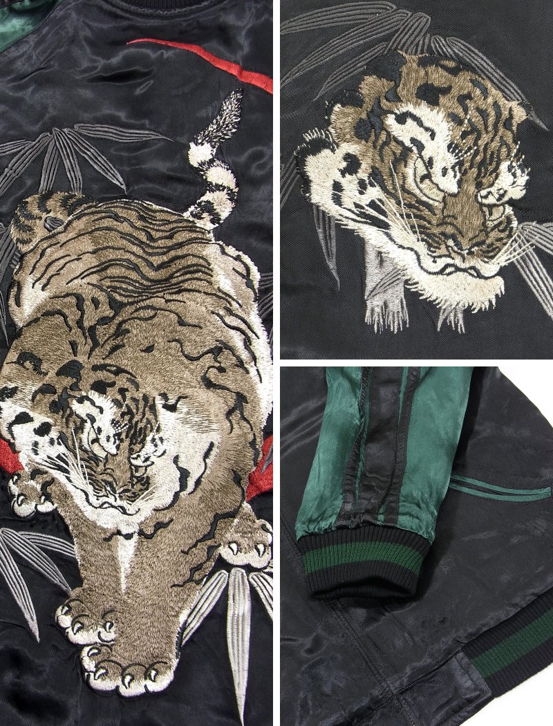 花旅楽団 はなたびがくだんSSJ-010 竹緋月に白虎スカジャン 和柄 和 スーベニールジャケット 大きいサイズXXL 3L