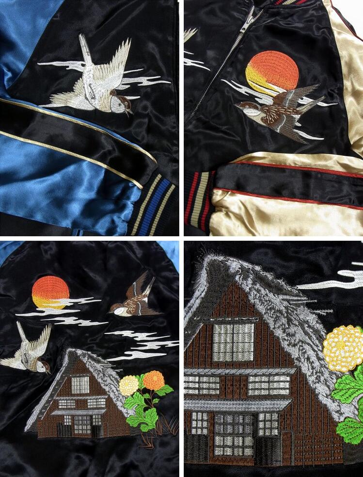 ジャパネスク JAPANESQUE 雀と藁ぶき屋根スカジャン 3RSJ-034 和柄 和 大きいサイズXXL 3L