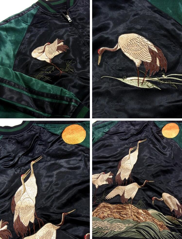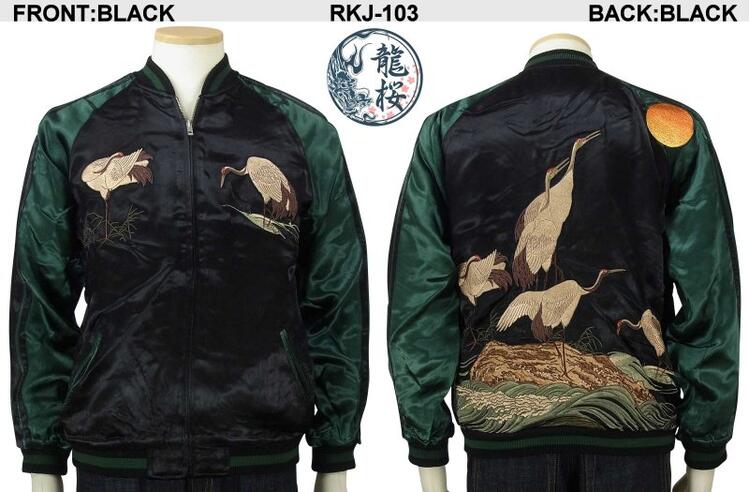 龍桜 りゅうおう RKJ-103 暁に鶴柄刺繍スカジャン 和柄 大きいサイズXXL 3L