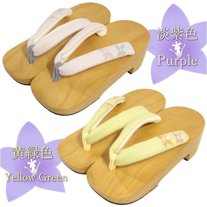 浴衣下駄 レディース 女性 ゆかた レディース 痛くない おしゃれ 桐 ピドヒール M 麻鼻緒 黄色 薄紫 刺繍 送料無料 和物屋 普段使い